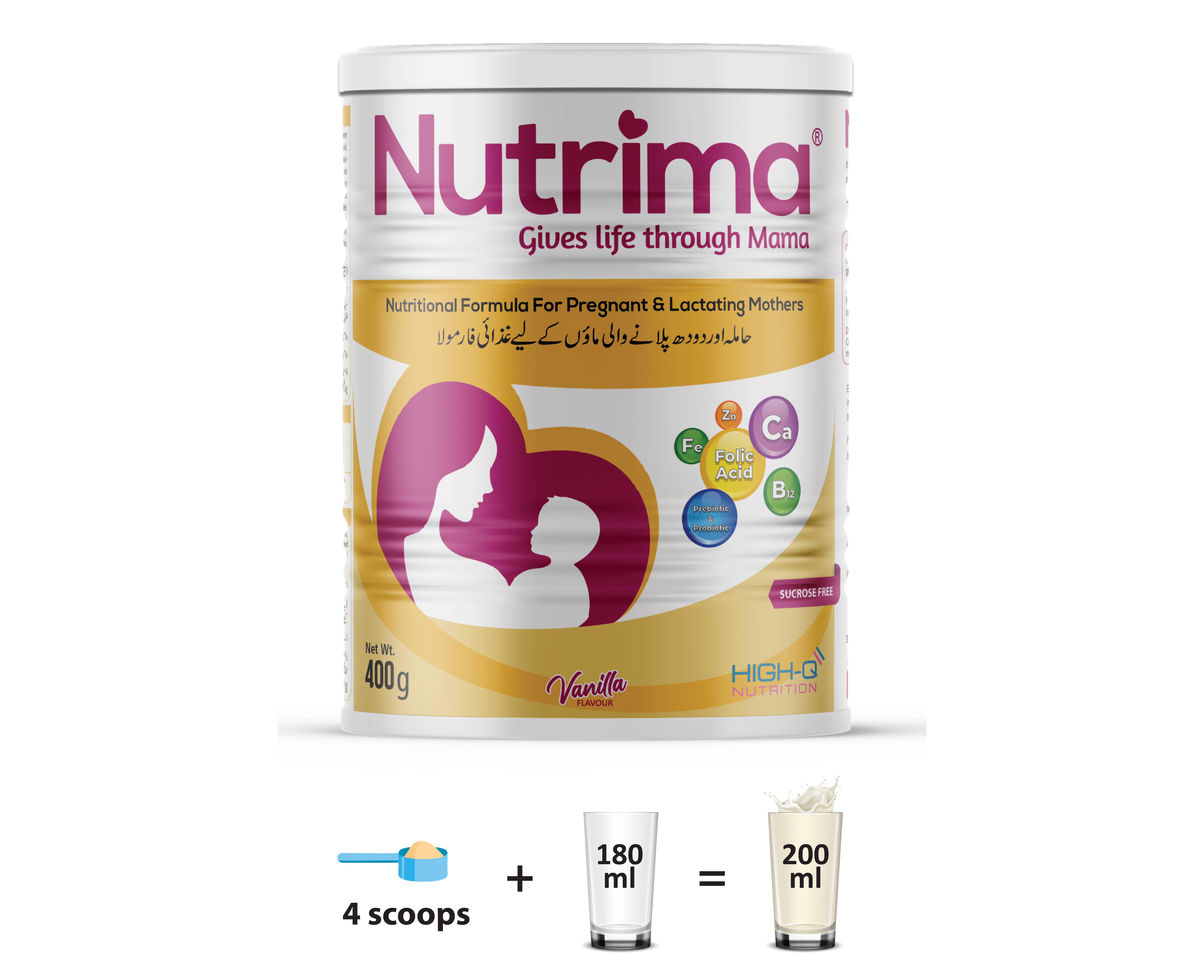 Nutrima® is a nutritional formula for pregnant and lactating mothers. It is enriched with essential vitamins, minerals, prebiotic and probiotic to provide a balanced and complete nutrition during and after pregnancy.